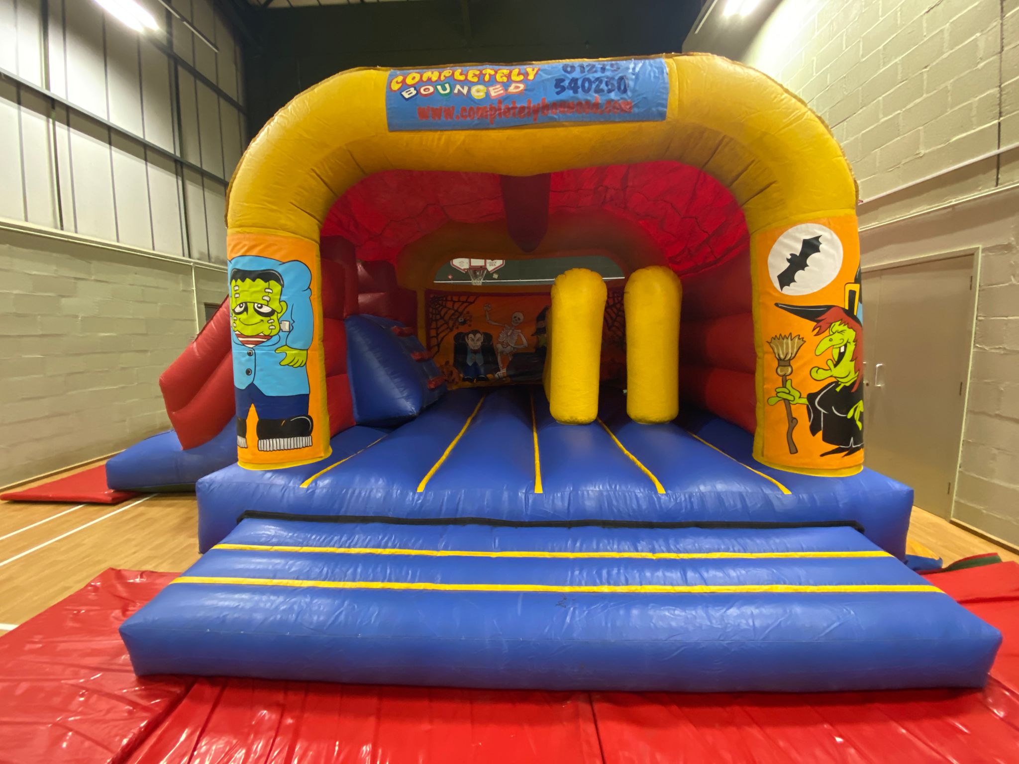 Its spacious indoor layout and high ceiling make it particularly suitable for bouncy castle hire and inflatable entertainment.